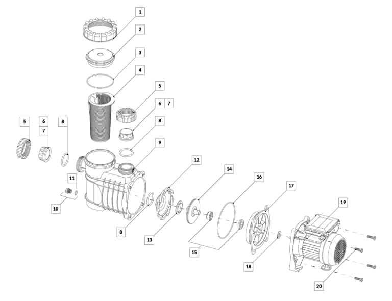 Bomba autocebante para piscina BAE 033 Vulcano. Su diseño confiable la convierte en la elegida por los instaladores.