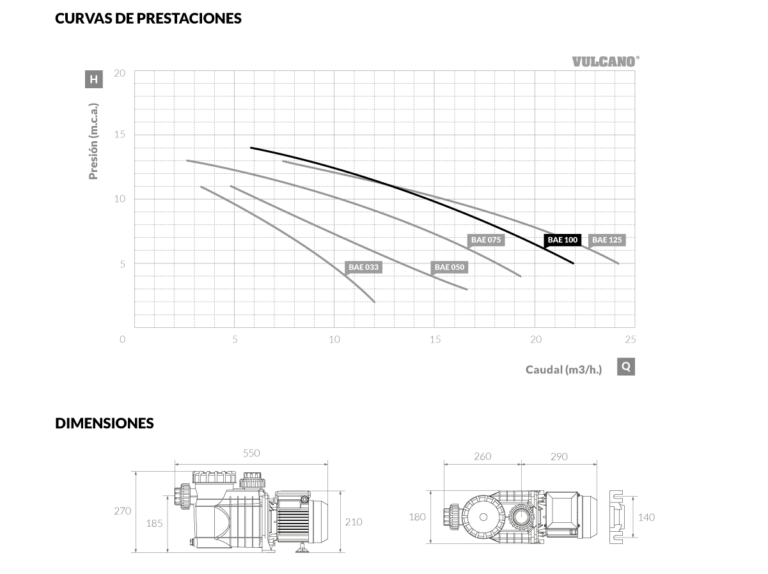 Bomba autocebante para piscina BAE 100 Vulcano. Su diseño confiable la convierte en la elegida por los instaladores.