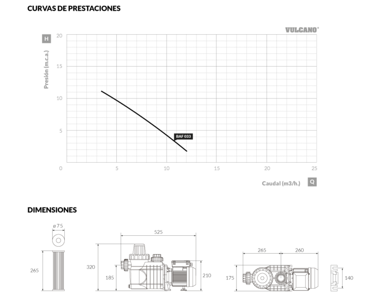 Bomba autocebante para piscina BAF 033 (AL) Vulcano. Diseñada como equipo móvil de filtración para el mantenimiento y cuidado del agua, para ser trasladada fácilmente y retirada de las proximidades de la piscina luego de su uso.