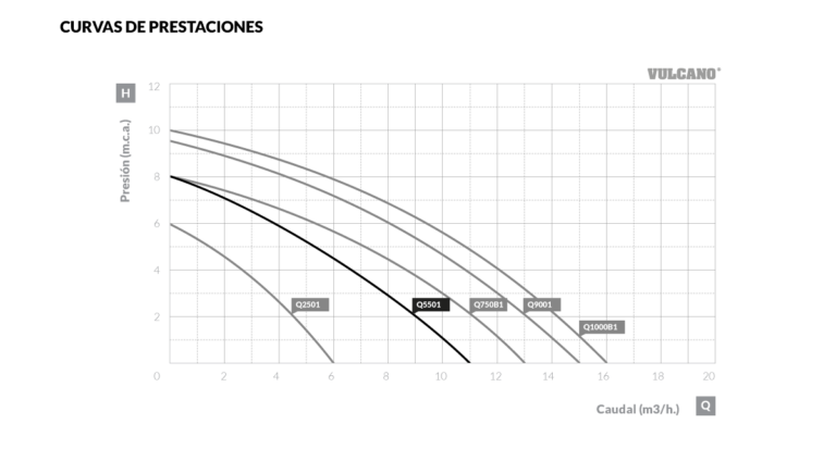 Bomba sumergible de achique Q5501 Vulcano. De 550W y tensión monofásica de 220V-50Hz, permite succionar agua limpia con partículas de hasta 5 mm. Impermeabilizada, puede ser sumergida hasta 7 m de profundidad. Su excelencia, radica en su perfecto funcionamiento siendo prácticamente libre de mantenimiento.