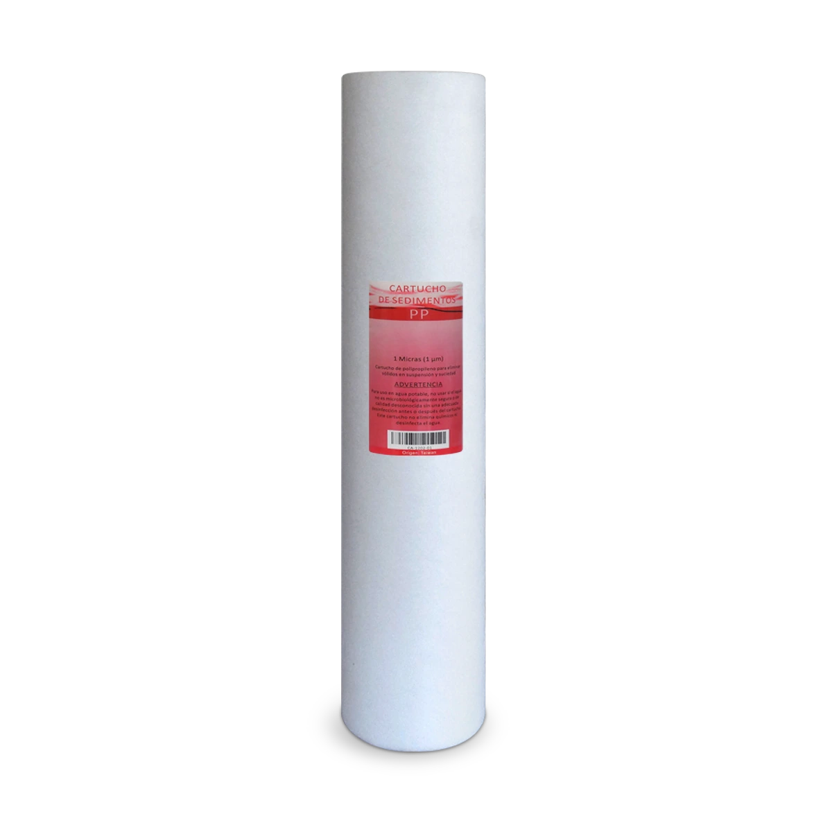 Cartucho para sedimentos BIG 4.5" x 20" largo, de 1 micron. Cartuchos compactos de polipropileno extrusionado de grado alimenticio con gran capacidad de retención.
