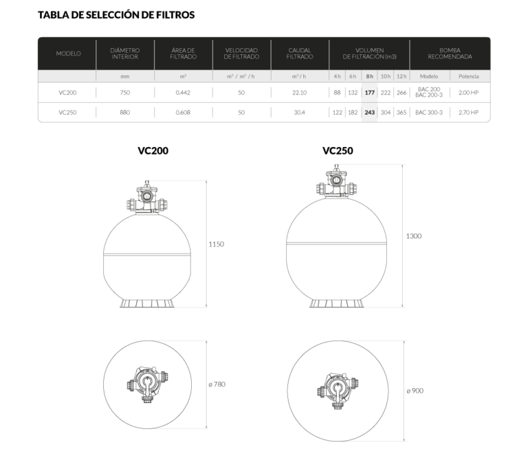 • El filtro para piscinas VC-250 es compatible con bomba para piscina Vulcano BAC 300