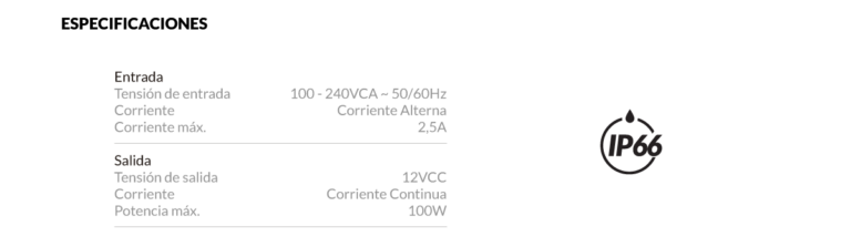 Fuente de alimentación Vulcano de 12V y 100W para alimentar luminarias LED para piscinas. Permite transformar la energía eléctrica que alimenta al sistema de iluminación de la pileta, reduciendo la tensión y rectificando el voltaje de corriente alterna (VCA) a corriente continua (VCC). Desarrollada con la mejor tecnología, brinda corriente de salida estabilizada, son 100% resinados logrando nivel de protección IP66, protegiendo sus componentes internos de la humedad y de salpicaduras de agua.