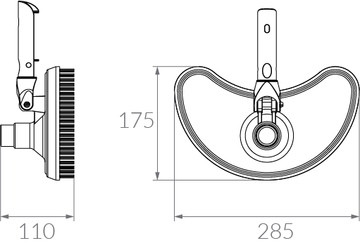 El modelo medialuna liviano posee cepillos de polipropileno fijos, su diseño y peso lo transforman en la mejor opción para limpiar escaleras y formas irregulares, resulta óptimo para piscinas pequeñas/medianas.