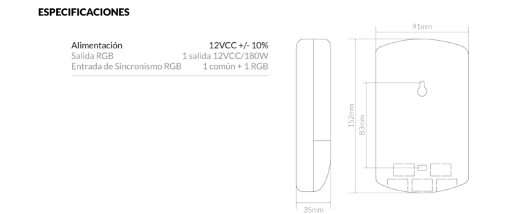 El módulo expansor RGB 180W opera en conjunto con el controlador RGB, permitiendo conectar mayor cantidad de luminarias PowerLED, y controlar todas con un mismo controlador RGB. Es posible conectar varios módulos expansores en paralelo hasta alcanzar la potencia necesaria.