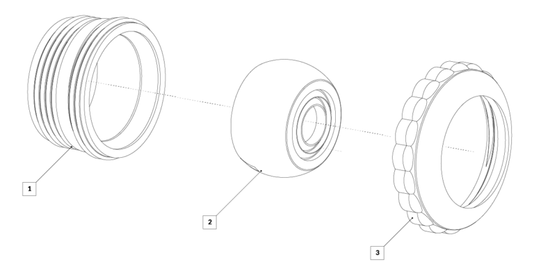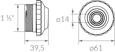 Retorno orientable Vulcano para piscina de hormigón. Posee cuerpo para exterior con rosca macho de 1 1/2" y boquilla multiflujo que consiste en un pico de ø14 mm que puede cortarse fácilmente para llegar a ø20 mm o a ø25,4 mm para ser instalado por debajo del nivel de agua. Diseñado para producir flujo en dirección al skimmer o toma de fondo, y así, favorecer a la limpieza y filtrado de la pileta.