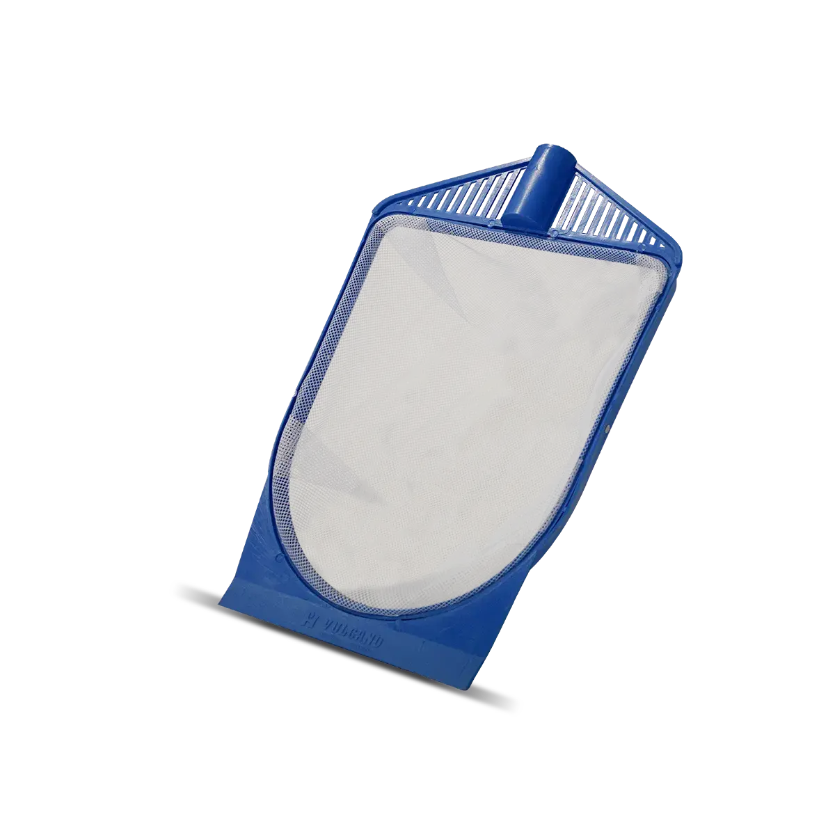 Sacahojas plástico de 410 x 290 mm con mango fijo de aluminio liso de ø19 mm. Posee red con bolsa, pensado para colectar impurezas del fondo de la piscina, cuenta con conector reforzado y canto en forma de pala para hacer más sencilla la recolección.