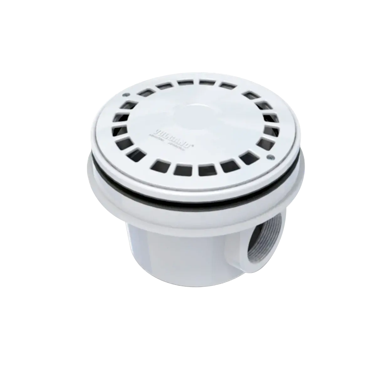 Toma de fondo Vulcano para piscina de liner. Diseñada para ofrecer excelente acción de succión y drenaje, evitando la formación de remolinos.