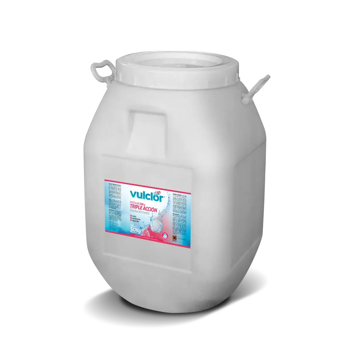 Triple acción en pastillas Vulcano x 200 g (50 kg). Eficaz bactericida de disolución lenta con propiedades desinfectantes, bactericidas, alguicidas y clarificantes. Ideal para mantenimiento esporádico de la piscina; no incrementa la alcalinidad del agua, se mantiene estable ante la acción del sol y es de alto poder residual.