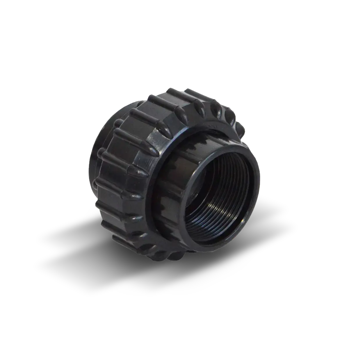 Unión doble hembra/hembra Vulcano para roscar 1 1/2" x 1 1/2". Fabricada de plástico ABS que, por sus características, suelda perfectamente con los caños de PVC.