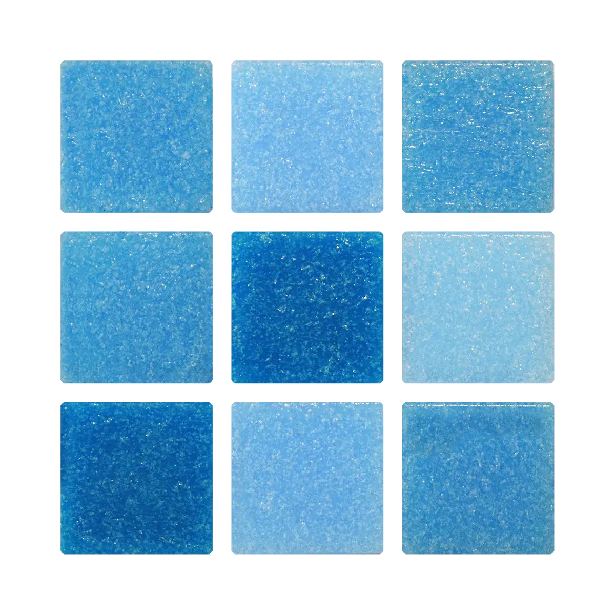 Venecitas Vulcano color mix azul claro (3 colores).Con un tamaño 2x2 cm y 4 mm de espesor, cada caja contiene 20 planchas de 3x3 venecitas que permiten cubrir 2.14 m².
